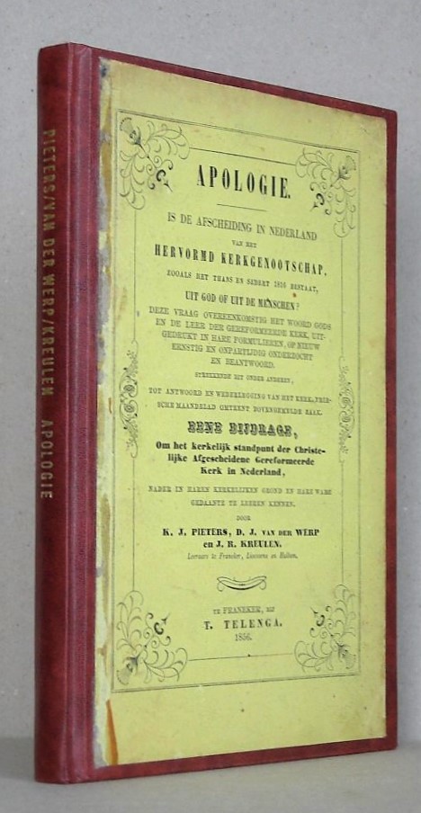 Apologie. Is de Afscheiding in Nederland van het Hervormd Kerkgenootschap, zooals het thans en sedert 1816 bestaat, uit God of uit de menschen? Deze vraag overeenkomstig het Woord Gods en de leer der Gereformeerde Kerk, uitgedrukt in hare Formulieren, op nieuw ernstig en onpartijdig onderzocht en beantwoord, … Eene Bijdrage, Om het kerkelijk standpunt der Christelijke Afgescheidene Gereformeerde Kerk in Nederland, nader in haren kerkelijken grond en hare ware gedaante te leren kennen.
