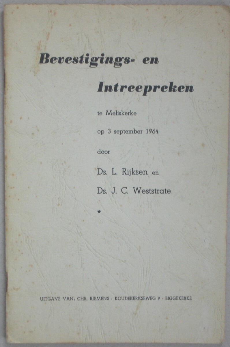 Bevestigings- en Intreepreken te Meliskerke op 3 september door Ds. L. Rijksen en Ds. J.C. Weststrate