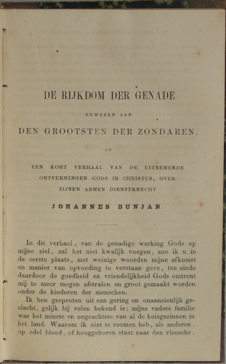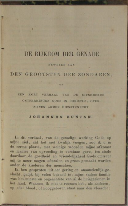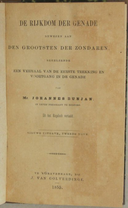 De rijkdom der genade bewezen aan den grootsten der zondaren behelzende een verhaal van de eerste trekking en voortgang in de genade van Johannes Bunjan (…) Nieuwe uitgave, tweede druk.