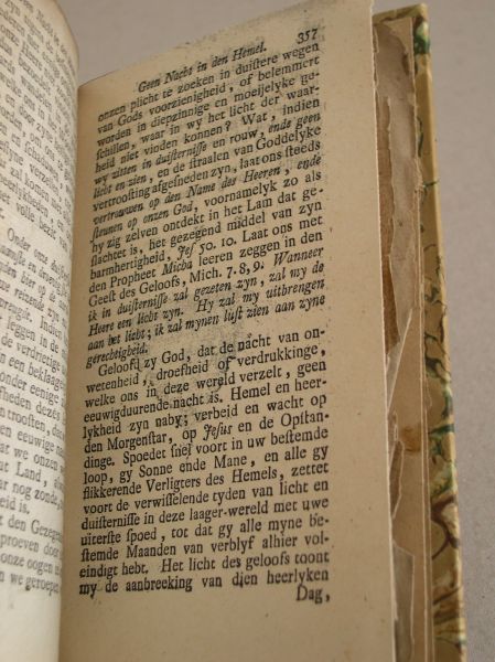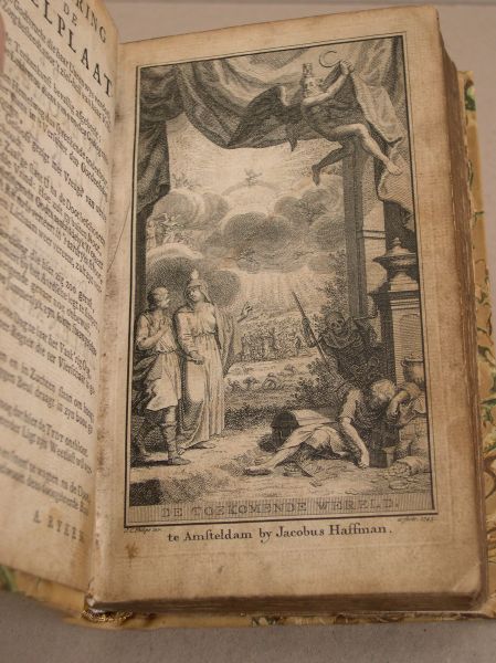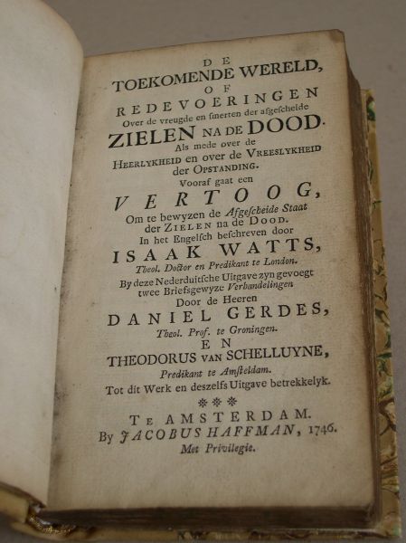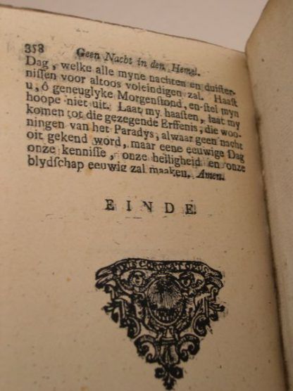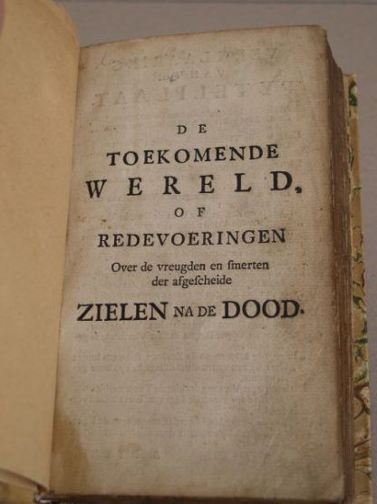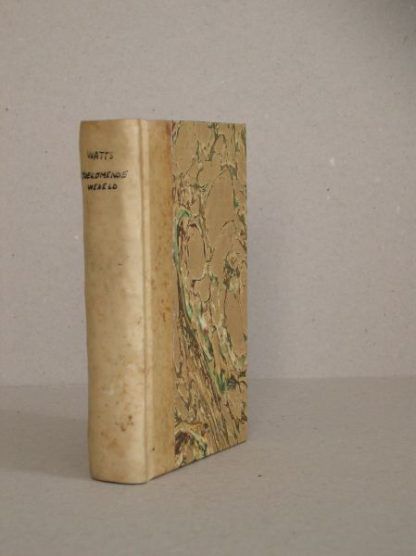 Opn. gebonden in half (oud) perkament, 8o; (12 (incl. titelpagina’s en frontspice)), (76), (3), 358 blz. (laatste blz. (357 en 358) in kopie op oud papier).