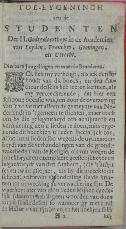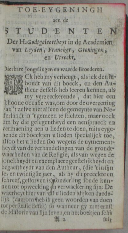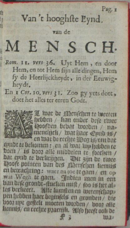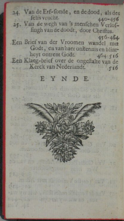 Destijds opn. gebonden, kunstleer met titelschildje en roodgeverfde boeksnede, 12°; (62), 540, (8) blz. Wat strak gebonden waardoor in de middelste marge op enkele blz. een enkele letter tekstverlies en tevens een klein wormgaatje in de eerste 4 blz. van het voorwerk met een enkele letter tekstverlies. Voor het overige een gaaf boekblok!