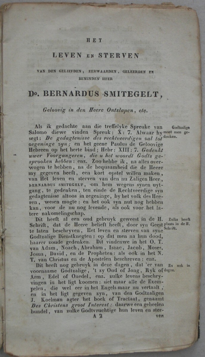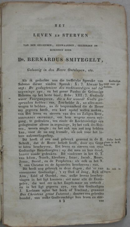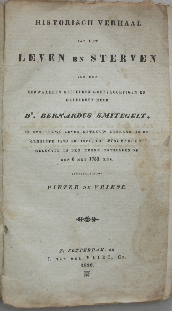 Historisch verhaal van het leven en sterven van den Eerwaarden Geliefden Godvruchtigen en geleerden Heer Do. Bernardus Smitegelt (..) Geloovig in den Heere ontslapen op den 6 mei 1739. Enz.