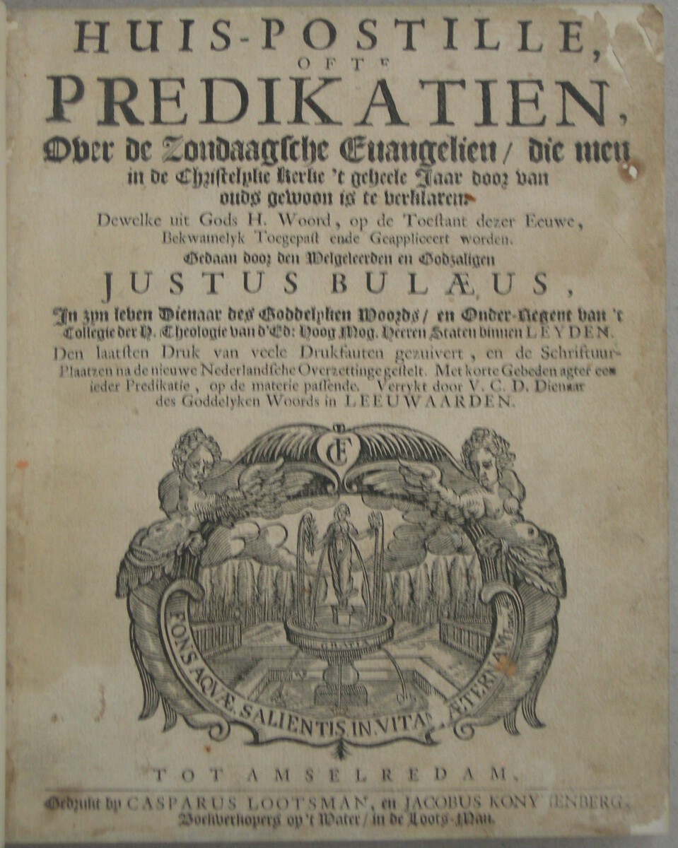 Huis-postille, ofte Predikatien, over de zondaagsche evangelien, die men in de christelyke kerke ’t geheele jaar door van ouds gewoon is te verklaren (…) Den laatsten druk van veele drukfauten gezuivert (…) Met korte gebeden (…) Verrykt door V.C.D. (= Viglius Cornelius Dominus). Dienaar des Goddelyken Woords in Leeuwarden.
