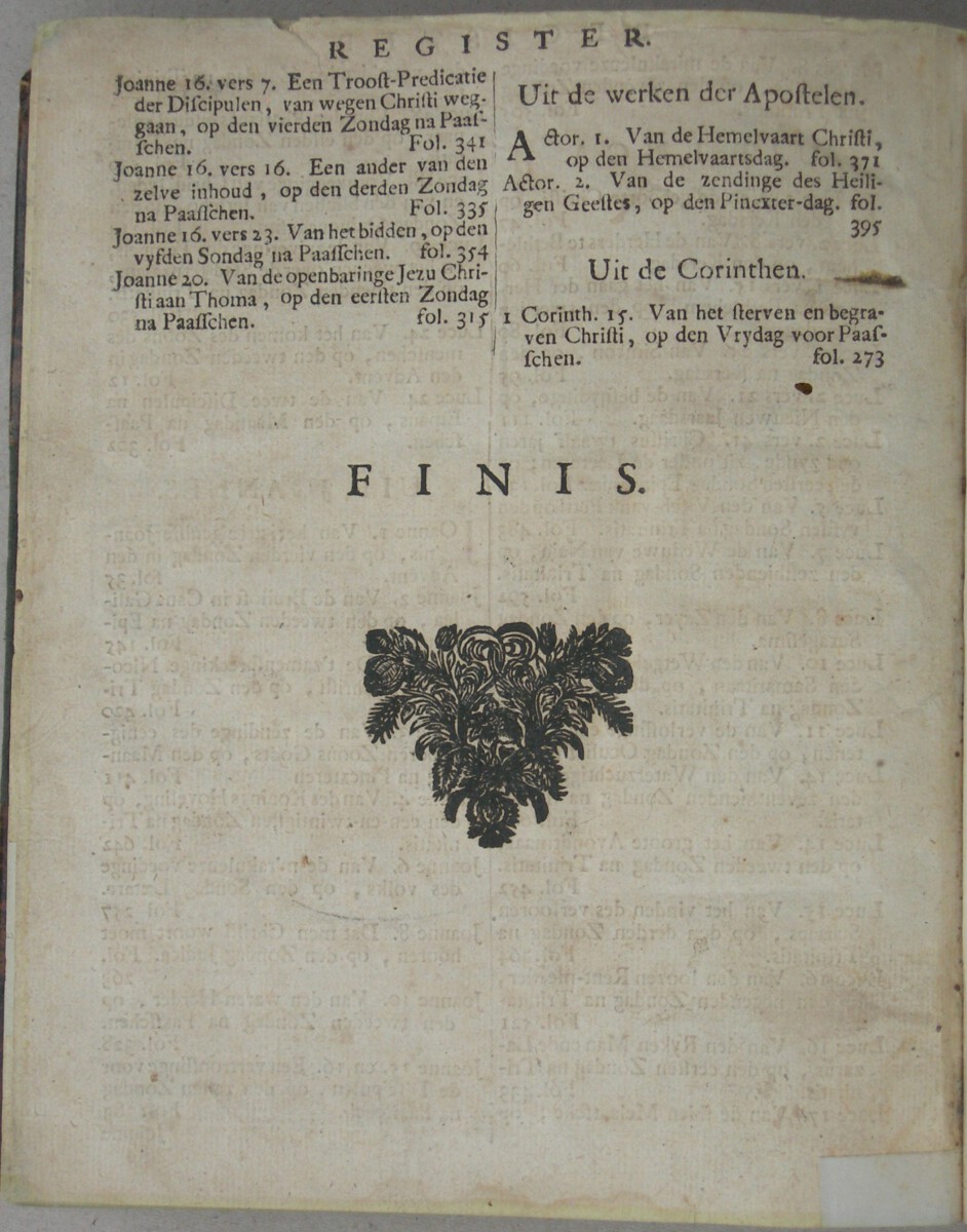 Oude halfleren band, 4°; (8), 701, (3) blz. (wat kort afgesneden, waardoor in de randtekening en de koptekst af en toe een enkele letter tekstverlies)