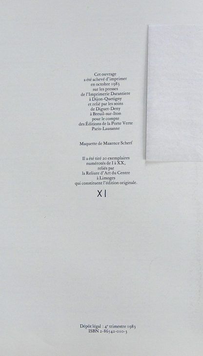 Uitgever: Éditions de la Porte Verte - Paris / Bibliothèque Nationale - Paris 1983