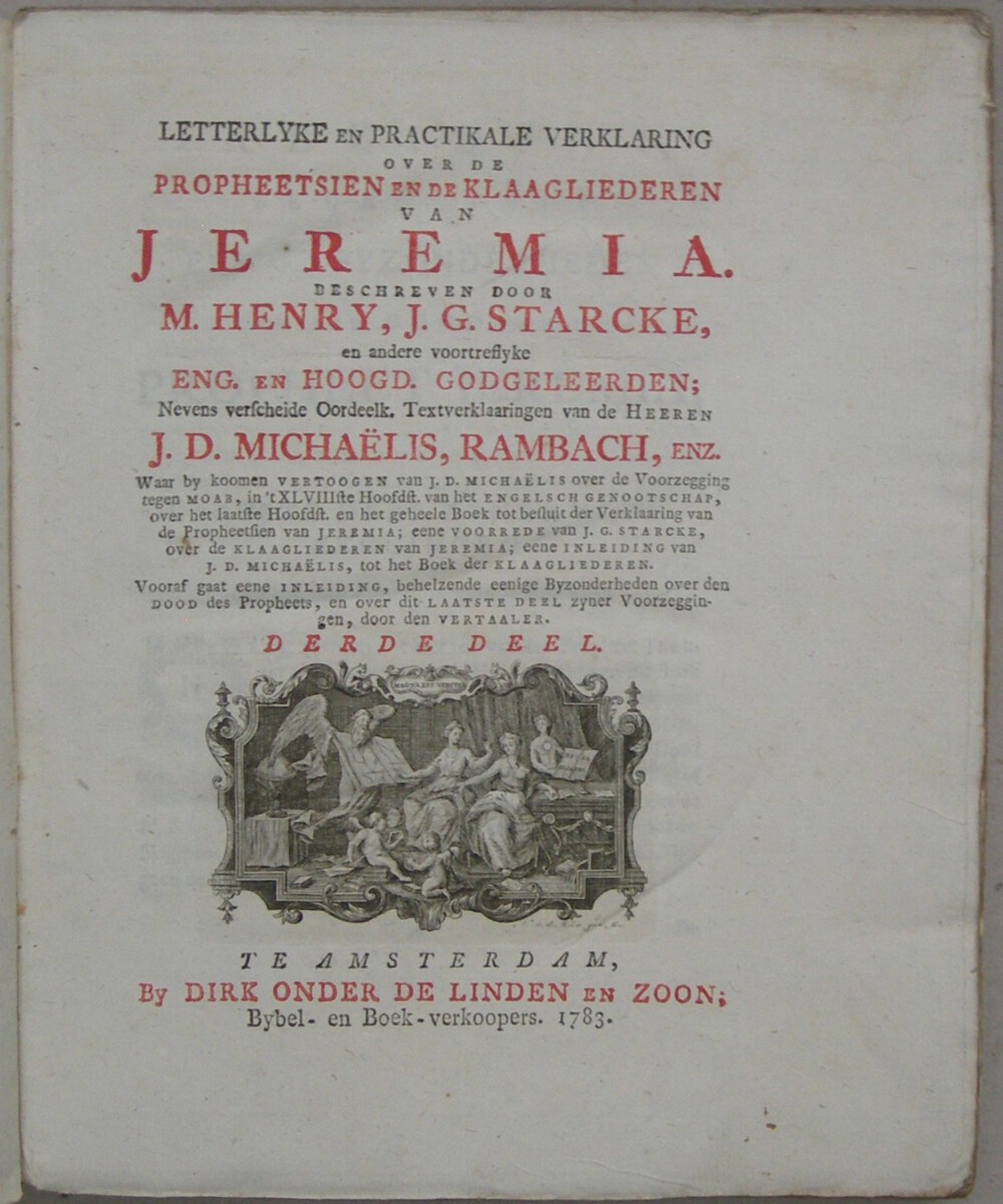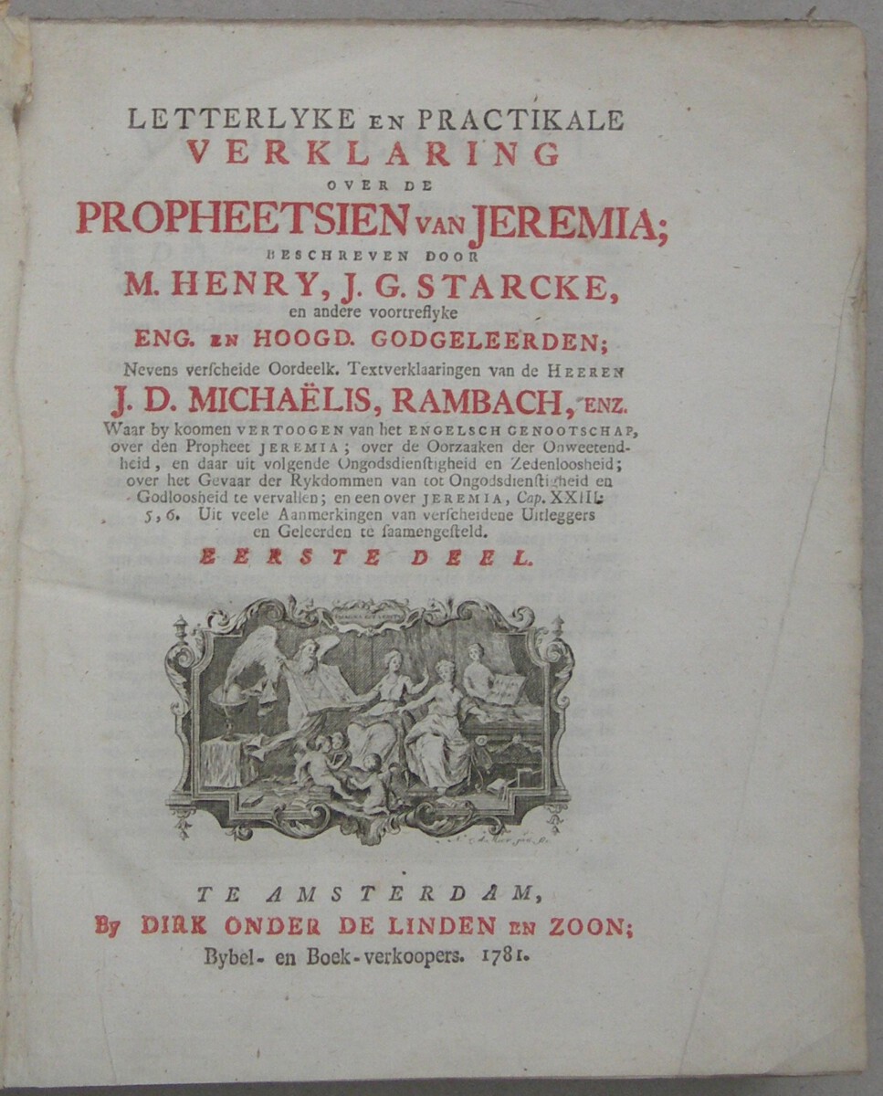 Letterlyke en practikale verklaaring over de propheetsien van Jeremia (…) Kompleet in 3 delen.