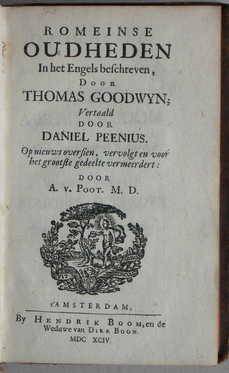 Romeinse Oudheden in het Engels beschreven, door Thomas Goodwyn; vertaald door Daniel Peenius. Op nieuws oversien ,vervolgt en voor het grootste gedeelte vermeerdert: door A. v. Poot. M. D.