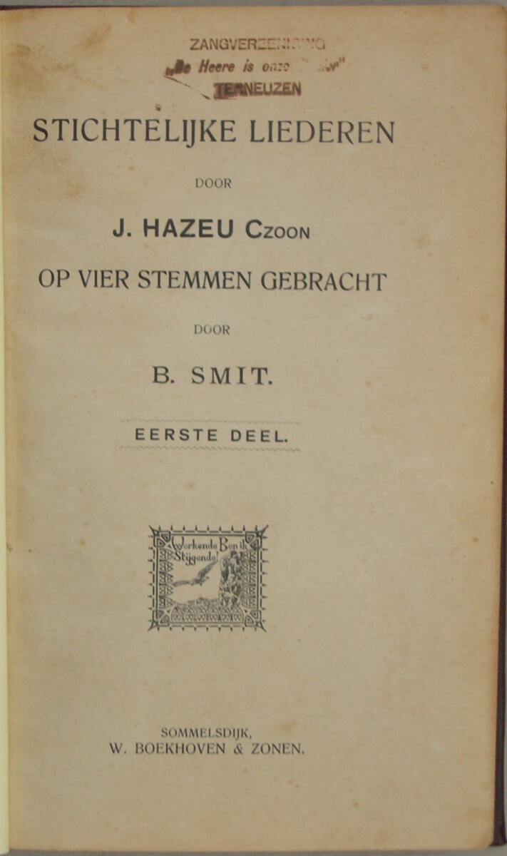Stichtelijke liederen door J. Hazeu, C.zoon, op vier stemmen gebracht door B. Smit. Eerste deel. WAARBIJ: Tweede deel (…)