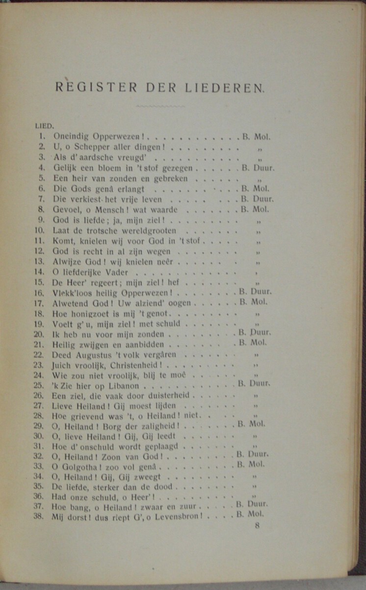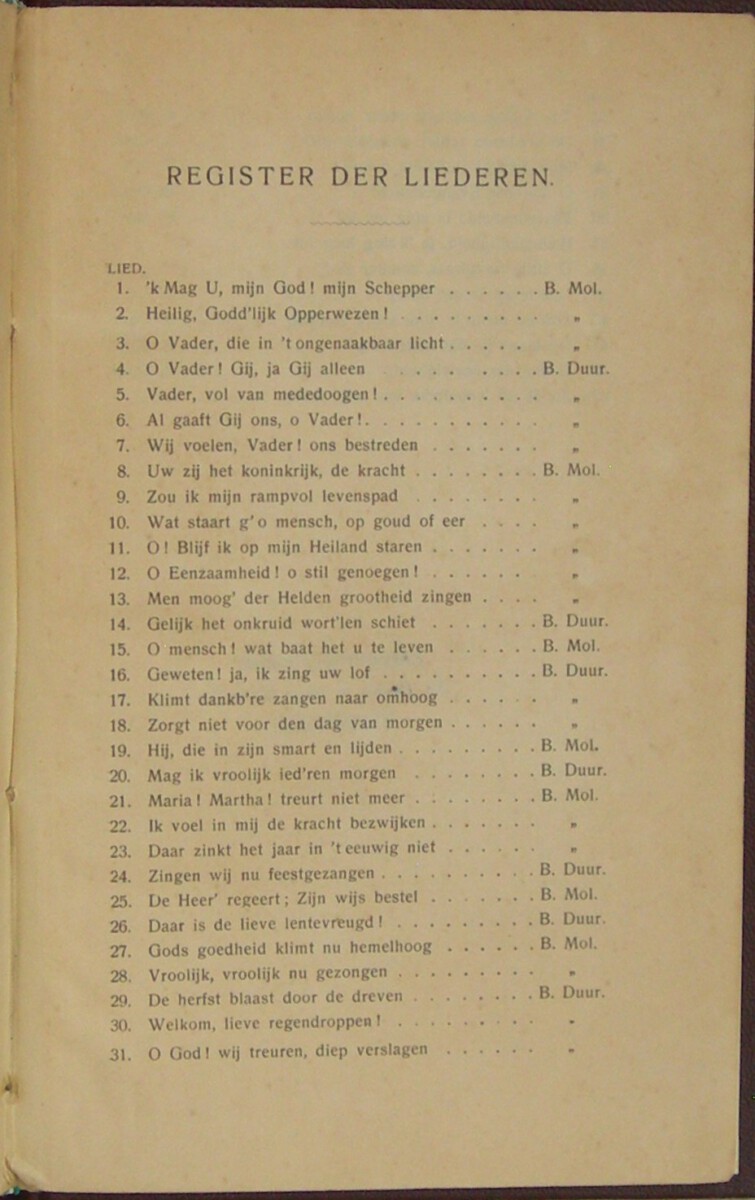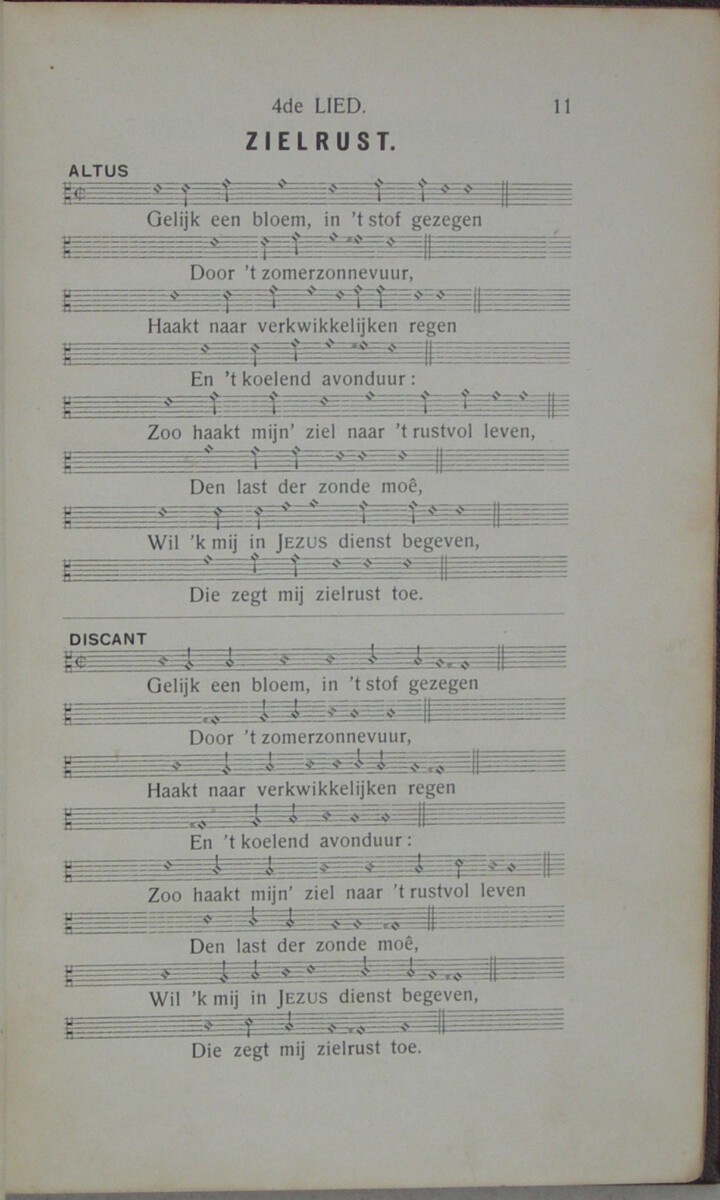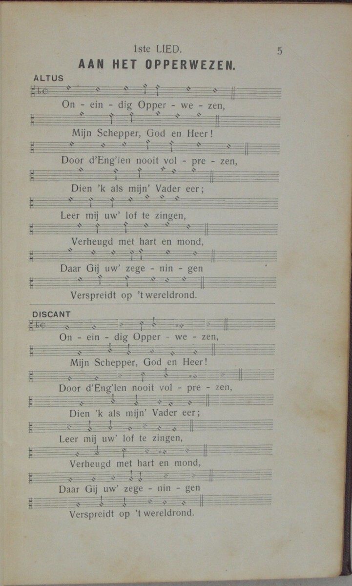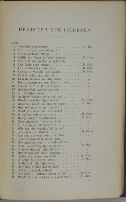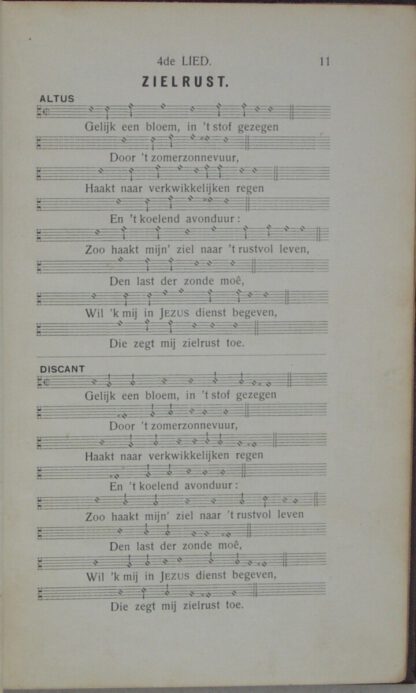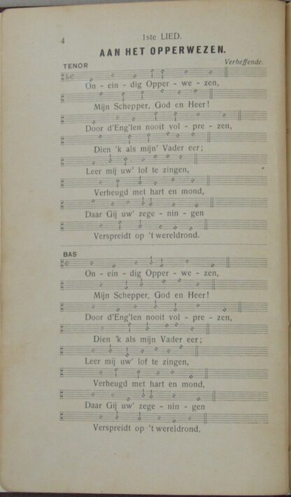 Opn. gebonden, leer met rugtitel, 4°; 111 / 87 blz. (met stempels van Zangvereeniging “De Heere is onze Banier” uit Terneuzen)