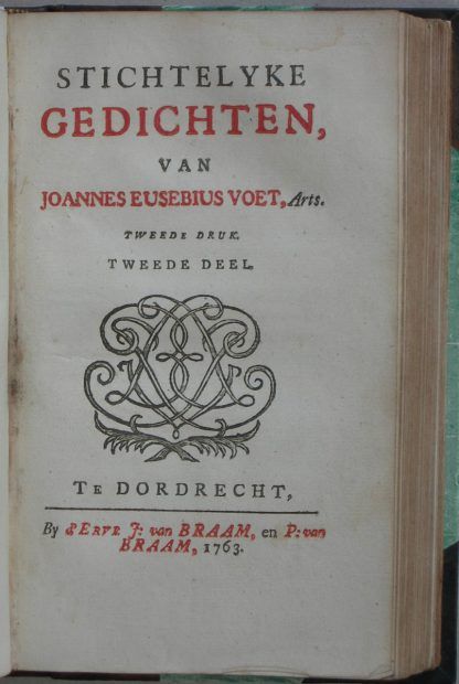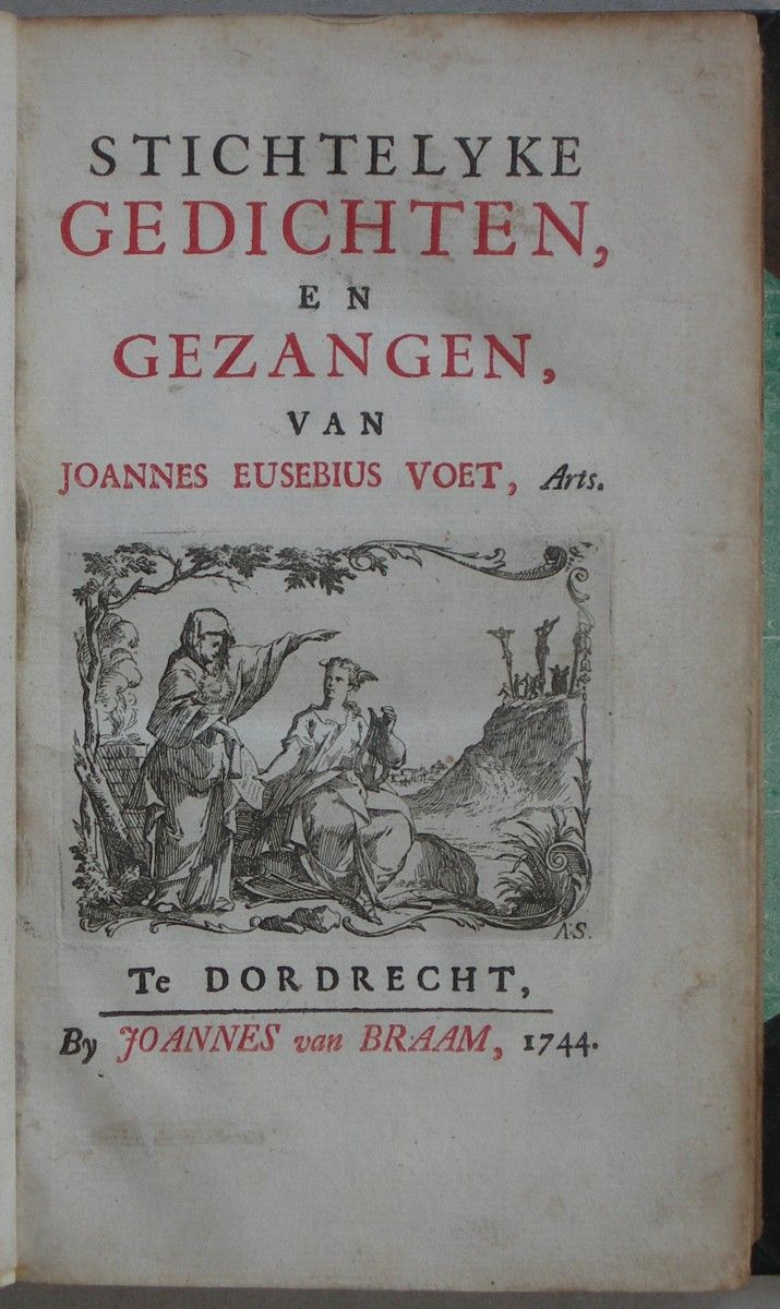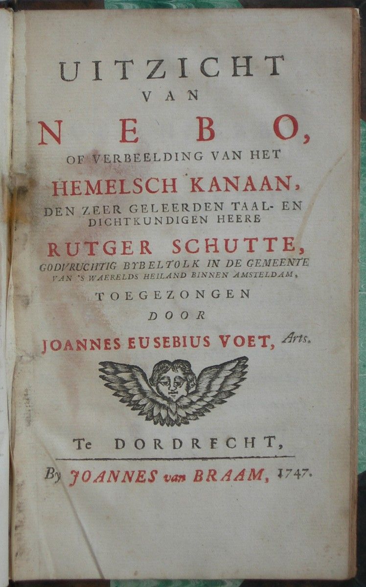 Stichtelyke gedichten, en gezangen, deel 1 en 2; waarbij Uitzicht van Nebo, of Verbeelding van het Hemelsch Kanaan Den zeer geleerde taal en dichtkundigen Heere Rutger Schutte… toegezongen door Joannes Eusebius Voet, Arts.