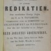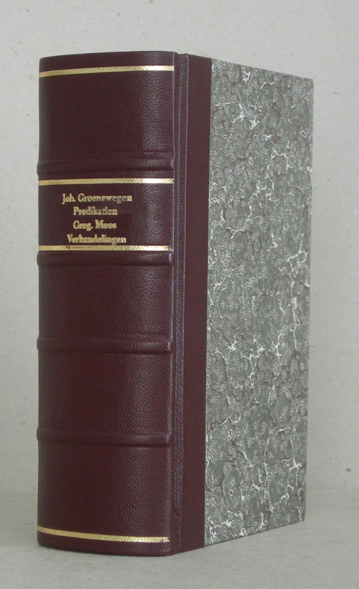 Opn. gebonden, halfleer met ribbels en rugtitel, 8°; (8), 328 / (16), 447 blz. (mist 1 blz. na de titelpagina uit het voorwerk van het eerste werk en de titelpagina van het 2e werk)