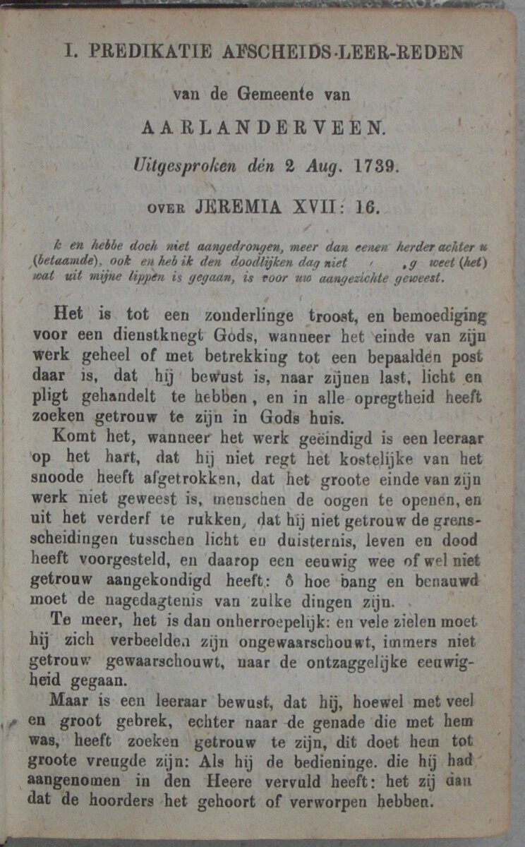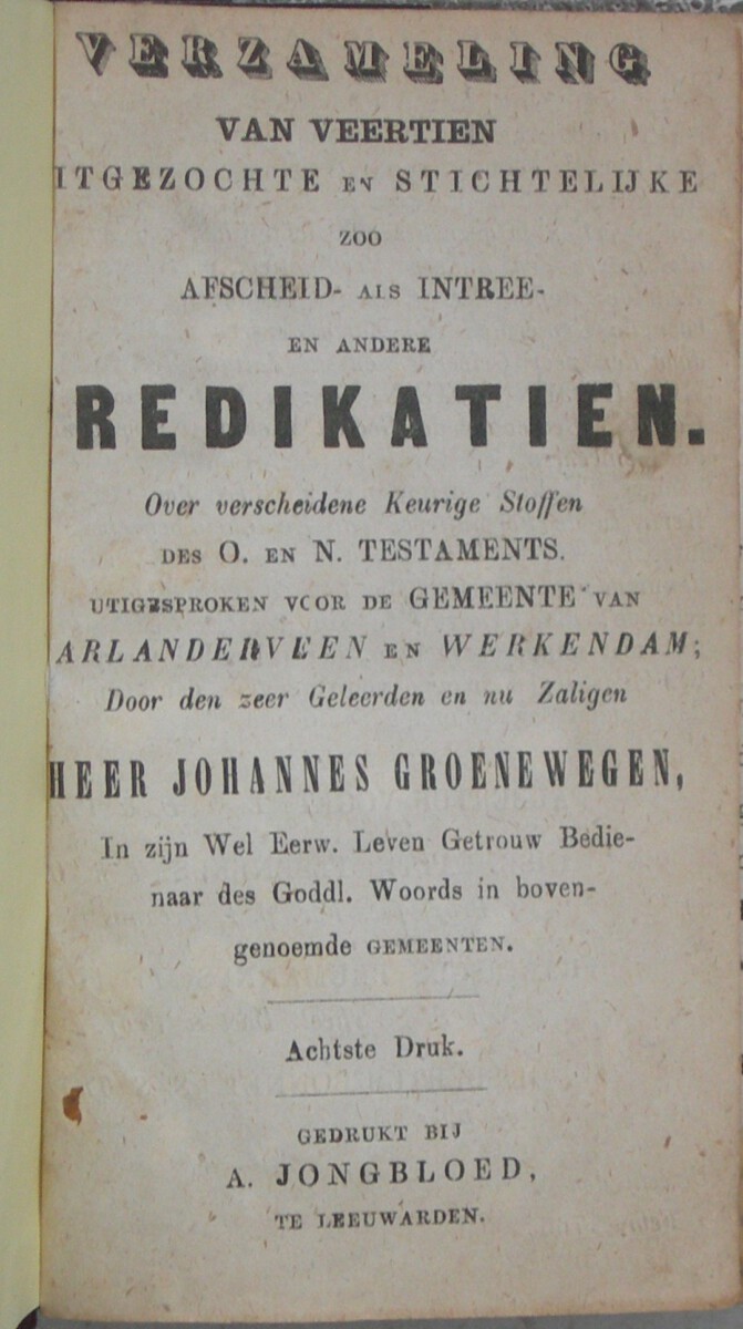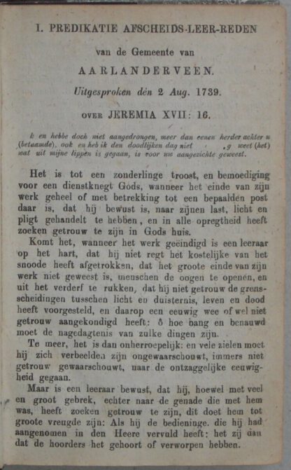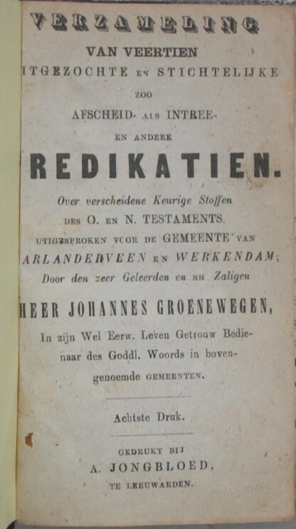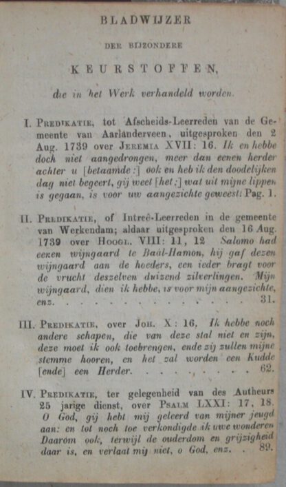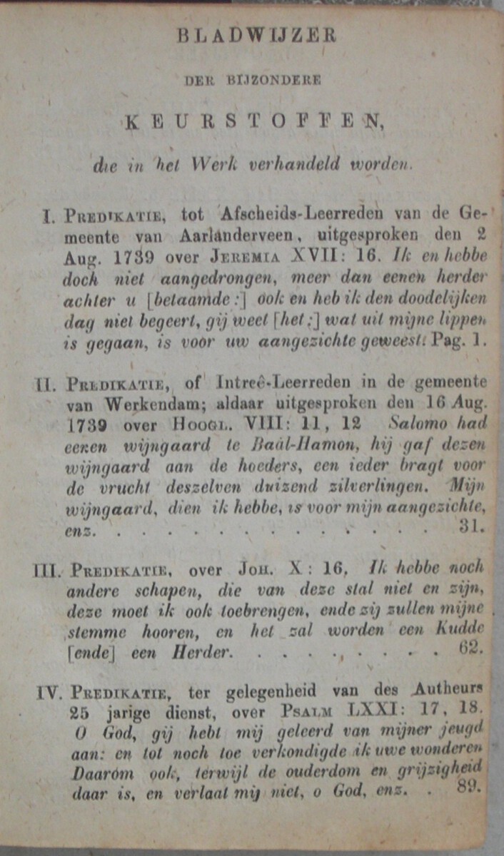 Verzameling van Veertien Uitgezochte en Stichtelijke, zoo Afscheids- als Intree en andere predikatien (…) Achtste Druk. WAARBIJ: Hagars Dienst onder de Vrye Sara. Verdedigende het voorrecht van Godts Genade Boven de Wet om tot Godt te naken (…) Over Jac IV: vers 8.